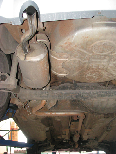 O instrutor e reparador Amauri Gimenes observa que o sistema de escapamento do VW Gol G5 é formado por cinco (5) partes: